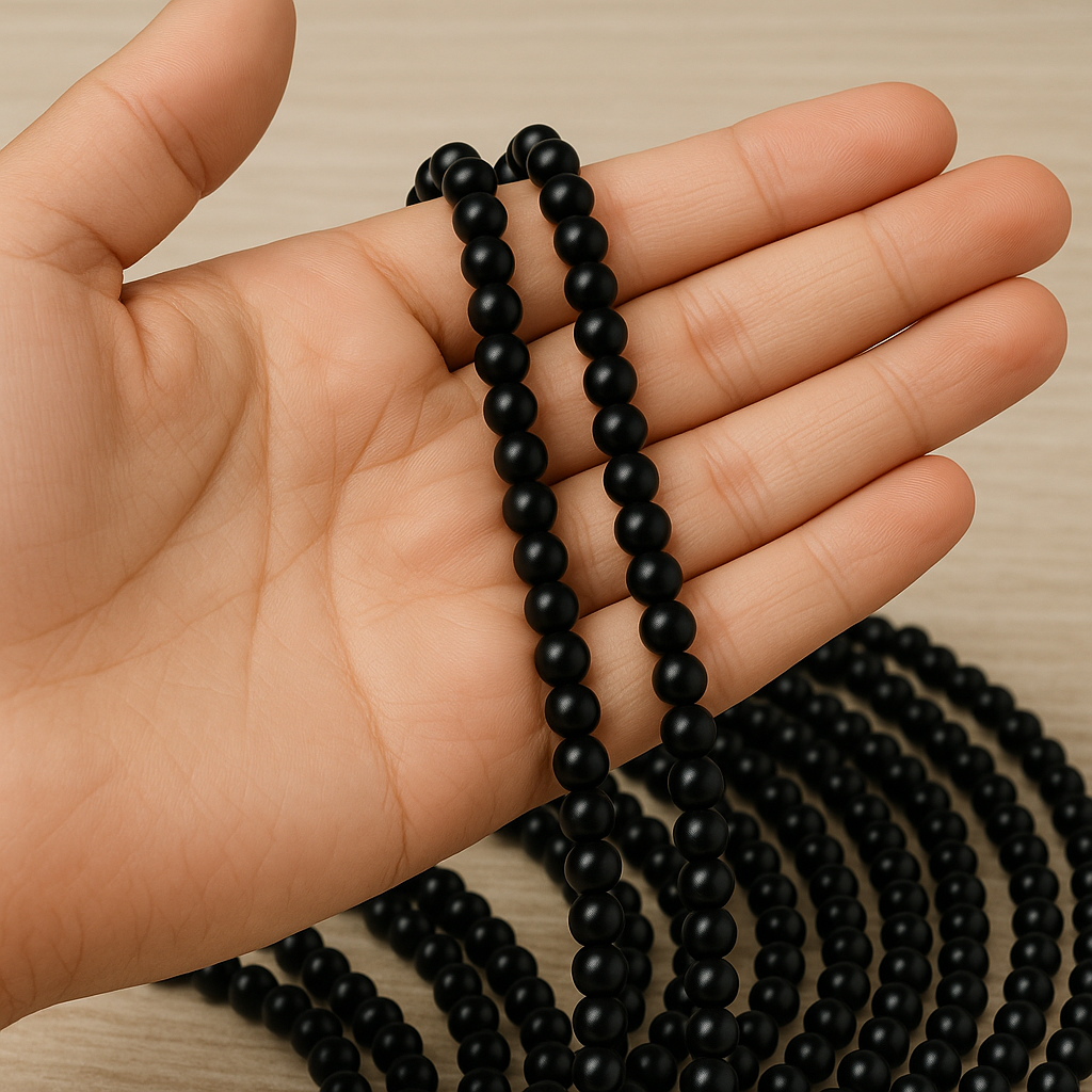 Premium-quality acrylic round beads in classic black with a smooth finish. Compact at 4mm, these beads are lightweight and durable, supplied in a bulk pack of 500 pieces.